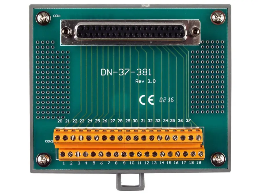 Blok konektorů I/O (rozteč = 3,81 mm) s montáží na lištu DIN a kabelem DN-37 Male-Female D- sub Kabel 1M (45o)