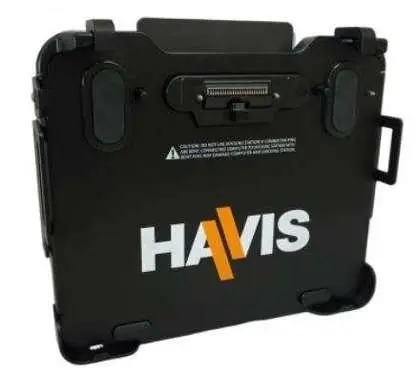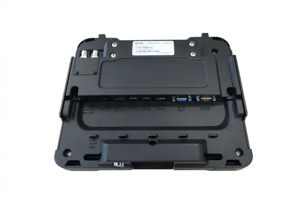 Dokovací stanice s Porty: 2× USB 3.0, 1× LAN, 1× sériový port, 1× HDMI, 1× VGA, průchod pro dvě antény, vstup napájení 16 V DC.