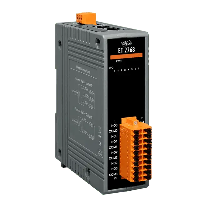 Ethernet I/O Module with 2-port Ethernet Switch, 4-ch Form A Relay Output and 4-ch Form C Relay Output (RoHS)