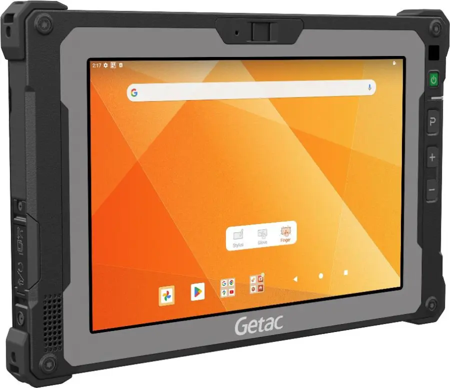 which is sunlight readable thanks to Getac's sunlight readable technology with 1000 nits brightness. The tablet has an 8MP webcam and a 16MP rear camera with autofocus.
