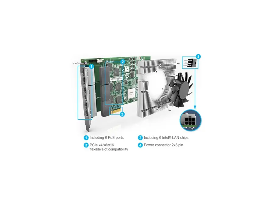 PCI Express Power over ethernet card, 6-port 1000 Base(T), 802.3at/bt compliant, RoHSP
