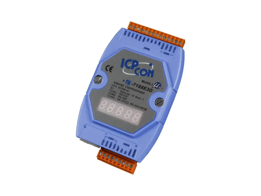 Internet Communication Controller with display .One Ethernet port, one RS-232 port, One RS-485 port, one RS-422/RS-486 port and DI/O