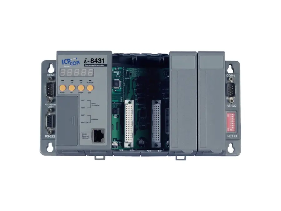 Embedded Controller with 5-digit seven segment Display, developing tool kit, 512 k flash, 512K SRAM, 4 slot I/O, support 10 mega ethernet (gray)