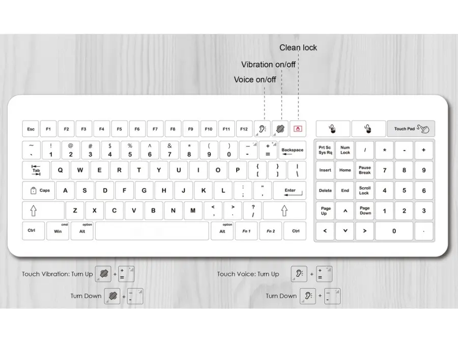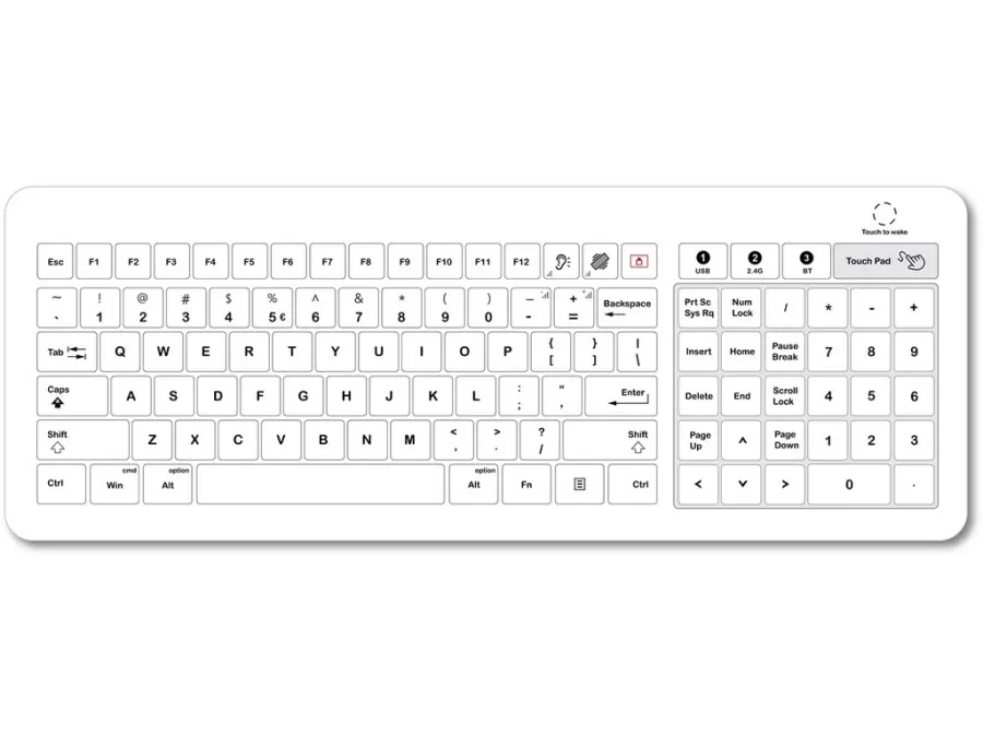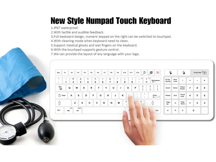 Omývatelná antibakteriální skleněná klávesnice pro čisté prostory