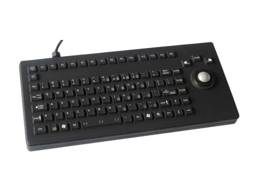 Průmyslová multifunkční gumová klávesnice s integrovaným trackbalem a podsvícením RKCT92 je produkt z dílny Belgického výrobce NSI, který se specializuje na řešení polohovacích zařízení a klávesnic pro průmysl, armádu a námořní přepr
