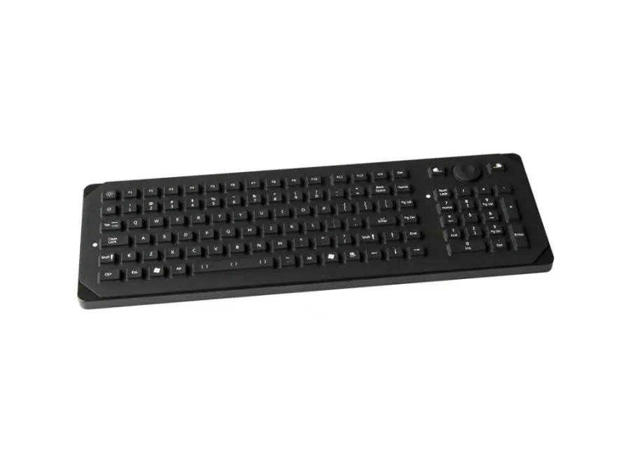 Kompaktní guová panelová klávesnice se 105 tlačítky a Trackpointem Hliníkový kryt, černě eloxovaný, tloušťka klávesnice 15 mm Krytí IP65, připojení USB, pracovní teplota 0 - 70°C Vesa-mount a LED podsvícení volitelně