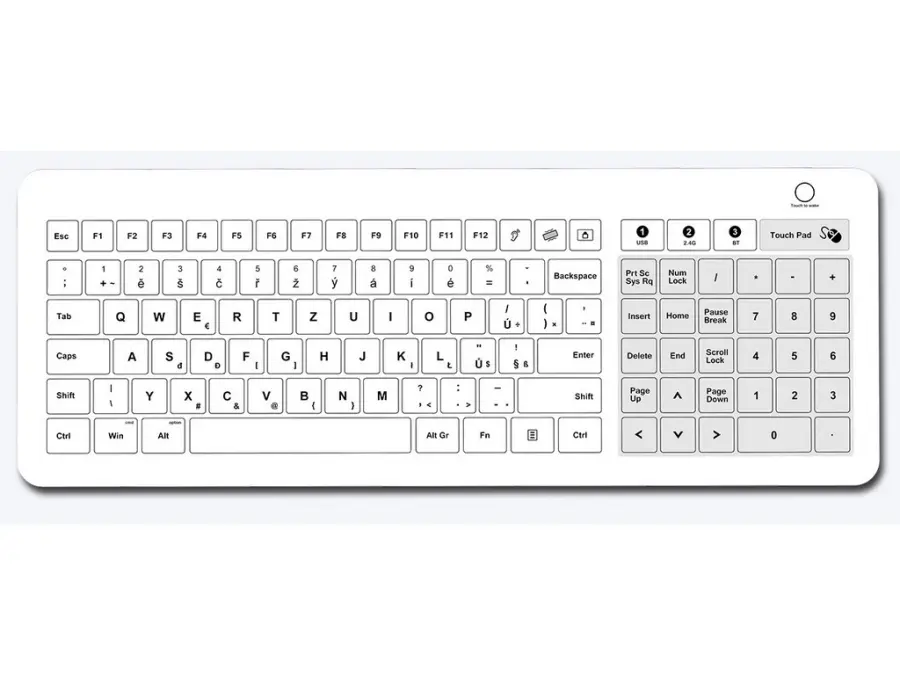 Omývatelná a antibakteriální skleněná klávesnice pro čisté prostory