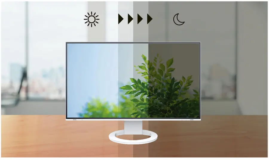 Aby se zabránilo únavě očí, senzor „Auto EcoView“ detekuje změny okolního světla, ke kterým dochází během dne, a automaticky nastavuje ideální úroveň jasu.