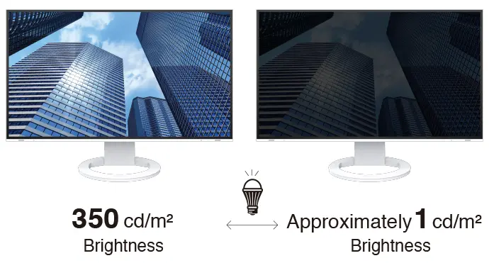 Ve špatně osvětlených prostorech je monitor s nižším jasem mnohem příjemnější na oči. Díky LED podsvícení lze jas snížit až na hodnotu 1 cd/m2 což je méně než 1 % z maxima.