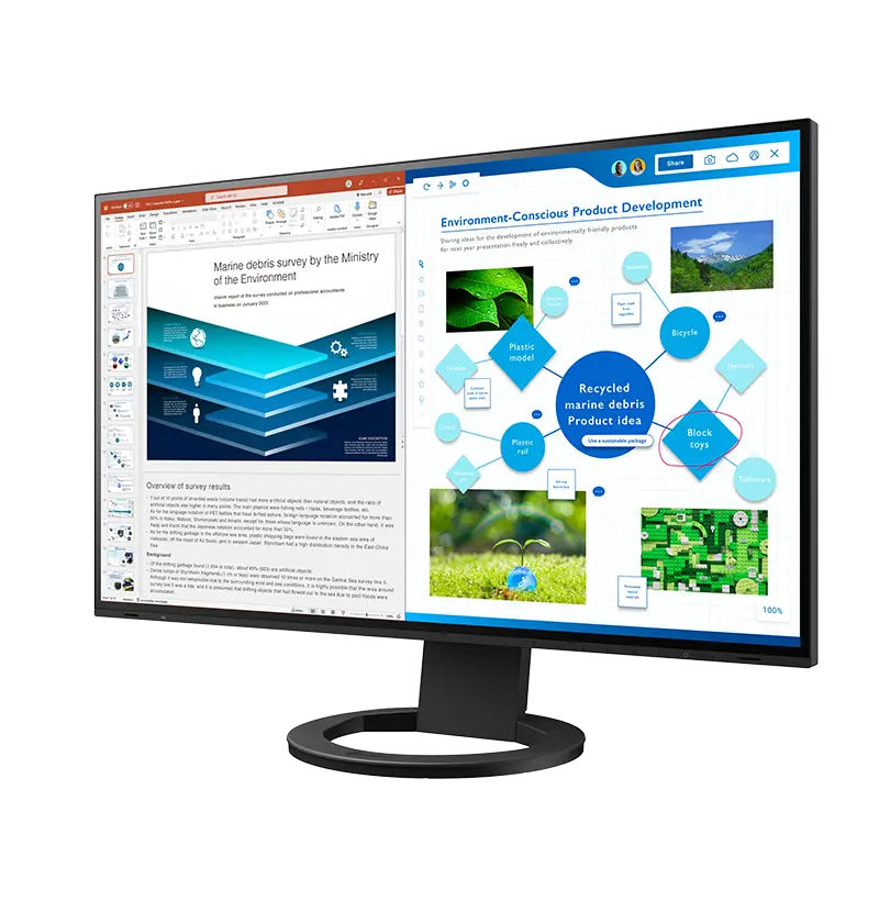 EIZO EV2781 je 27“ monitor s IPS panelem, rozhraním USB-C a WQHD (2560 x 1440) rozlišením, což je o 78 % více pixelů, než nabízí běžné FHD (1920 x 1080) monitory.