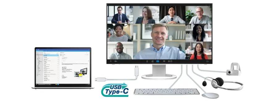 Monitor je vybaven portem USB-C, který umožňuje přenos USB signálů, obrazu, zvuku, napájení, a dokonce i sítě. Díky tomuto víceúčelovému připojení je připojování a odpojování vašeho laptopu mezi jednotlivými pracovišti velice snadné.
