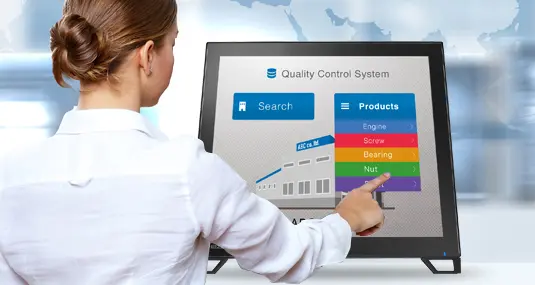 Průmyslový 17,0" barevný LCD monitor s dotykovým panelem (PCAP), rozlišením 1280 x 1024 (5:4) pixelů, svítivostí 220 cd/m2 a kontrastem 1000:1. Verze bez stojanu.