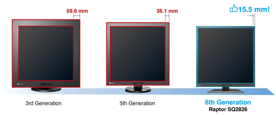 Raptor SQ2826 je monitor 6. generace, který se vyznačuje nejelegantnějším designem v celé řadě. Díky rámečkům, které mají pouhých 15,5 mm, a celkově kompaktnímu provedení se monitor pohodlně vejde do každé instalace.