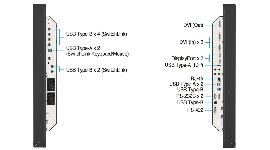 Upstream | USB 5Gbps: Type-B (IDP) USB 2.0: Type-B (External communication) USB 2.0: Type-B x 6 (SwitchLink)
