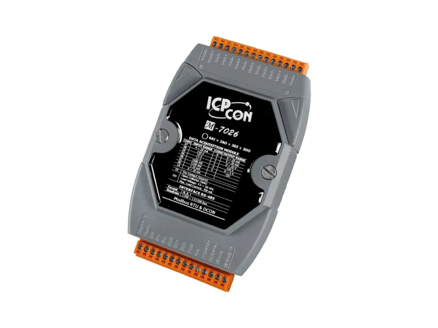 6-channel Analog Input, 2-channel Analog Output, 3-channel Digital Input and 3-channel Digital Output Module using the DCON and Modbus Protocol (Gray Cover) (RoHS)