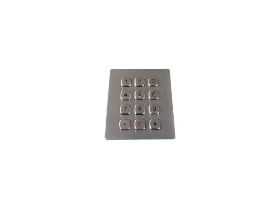 12ti klávesová odolná, kovová numerická klávesnice určená k zabudování do panelu. Vyrobneno z kvalitní nerezové oceli nárazu a vodě odolné provedení s průmyslovým krytím IP67. Délka stisku 0,2 mm. Klávesnice je určena především pro přístup k termin