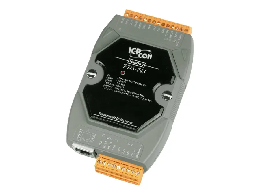 Programmable Device Server with three RS-232, one RS-485, four DI and four DO ports (RoHS) Includes one CA-0910 cable