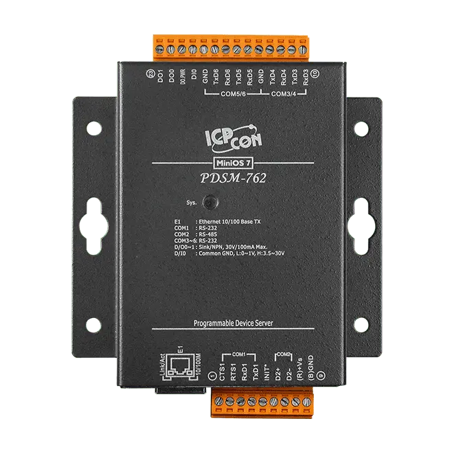 Programmable (5x RS-232 and 1x RS-485) Serial-to-Ethernet Device Server with 1x DI and 2x DO (Metal Case) (RoHS) Includes CA-0910 Cable