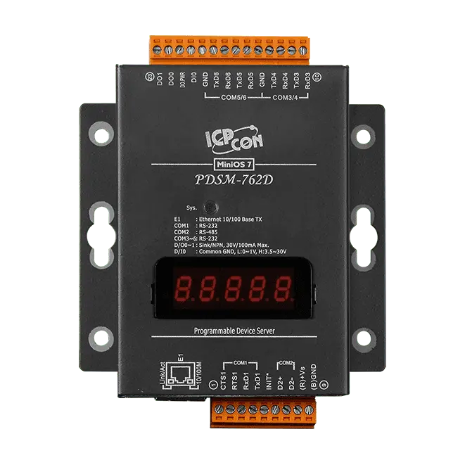 Programmable (5x RS-232 and 1x RS-485) Serial-to-Ethernet Device Server with 1x DI, 2x DO and LED Display (Metal Case) (RoHS) Includes CA-0910 Cable