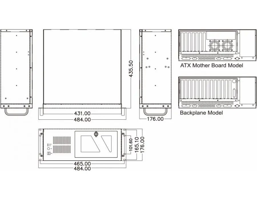 4U ATX Rackmount Chassis,2xUSB2.0,Black,ATX Power Switch,With 300W PSU and Grounding stud,HDD shockproof,RoHS