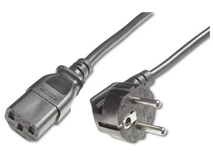 Napájecí kabel v černém provedení pro počítač nebo monitor. Třížilový kabel je zakončený standardní přístrojovou zástrčkou.