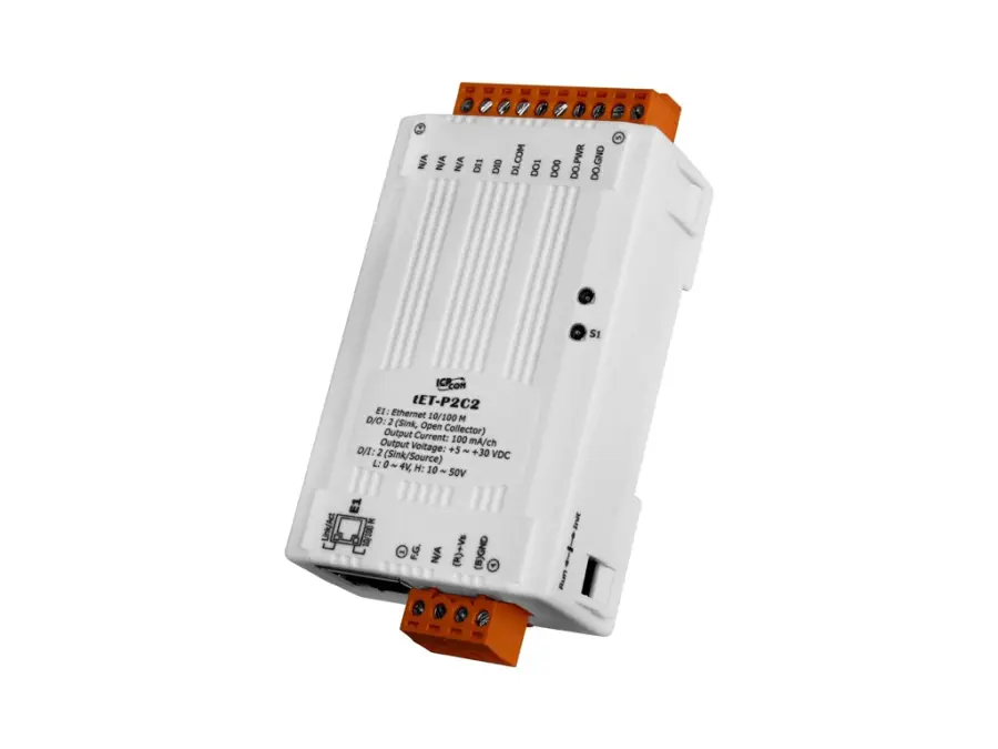 Tiny Ethernet module with 2-ch DI and 2-ch DO (NPN, Sink) (RoHS)