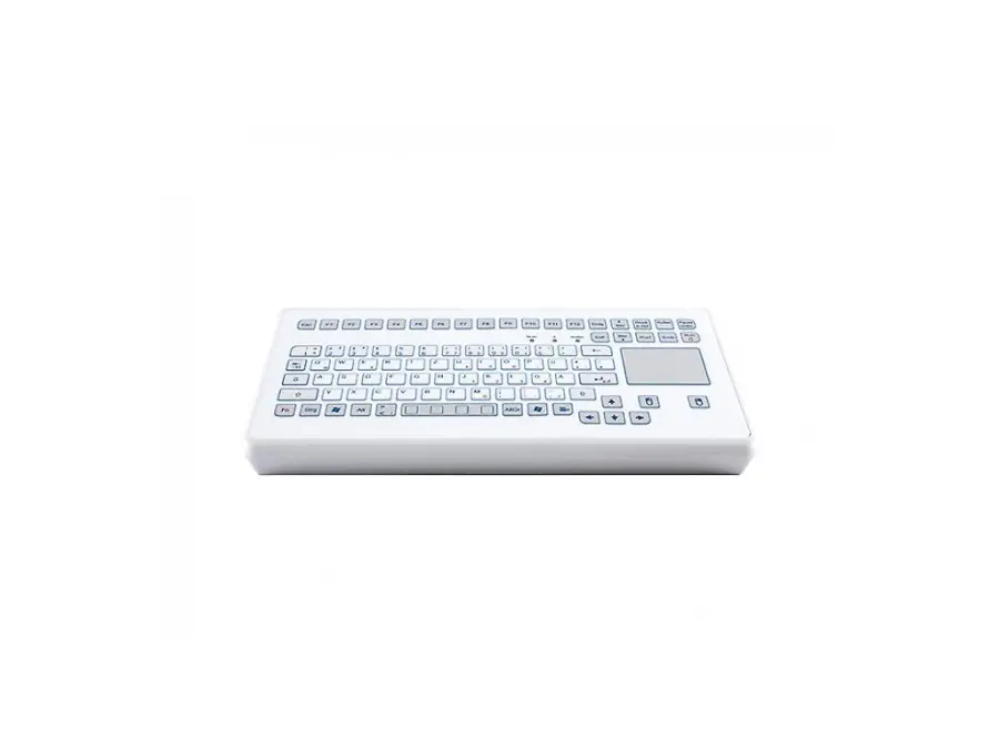 INDUSTRIAL TKS DESKTOP KEYBOARD WITH AN INTEGRATED TOUCHPAD - Integrated capacitive touchpad - Robust polyester front foil with key embossment - Rugged plastic enclosure - IP65 resistant against dirt, dust and liquids - Individual modificatio
