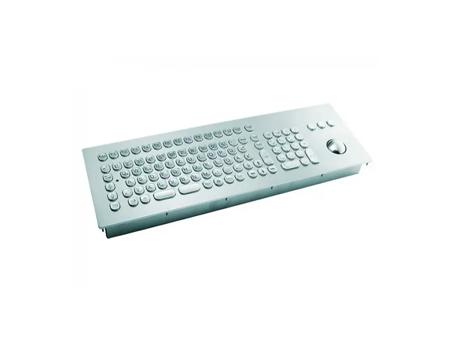 INDUSTEEL - THE STAINLESS STEEL PANEL MOUNT KEYBOARD WITH FULL LAYOUT AND 38-MM TRACKBALL - Stainless steel panel mount keyboard for frontal integration with 38-mm trackball - Full keyboard layout - Soft typing through switching elements - IP65 resistant against water and dust ingress - Individual modifications on demand Order numbers:KV14005 DE PS/2 KV14006 US PS/2 KV14007 DE USB KV14008 US USB