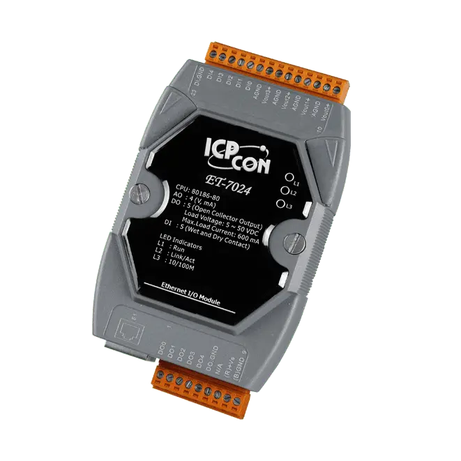 Ethernetový I/O modul se 4 kanály AO, 5 kanály DI a 5 kanály DO (RoHS)