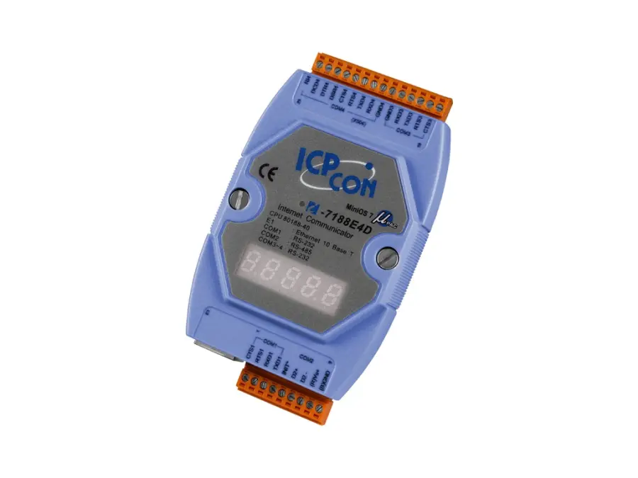 Internetový komunikační řadič s displejem Jeden ethernetový port,tři porty RS-232 a jeden port RS-486.