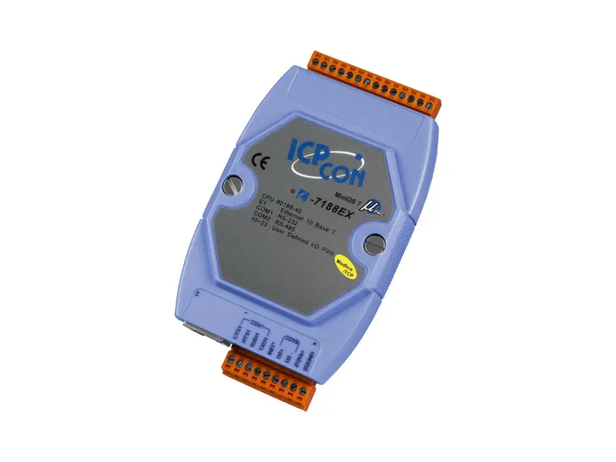 Modbus/TCP Internet/Ethernet Vestavěný internetový/ternetový řadič s jedním ethernetovým portem, jedním portem RS-232, jedním RS-485 / 512K SRAM / 512K FLASH a několika volitelnými uživatelsky definovanými vstupy/výstupy.