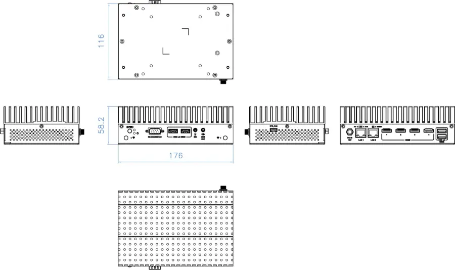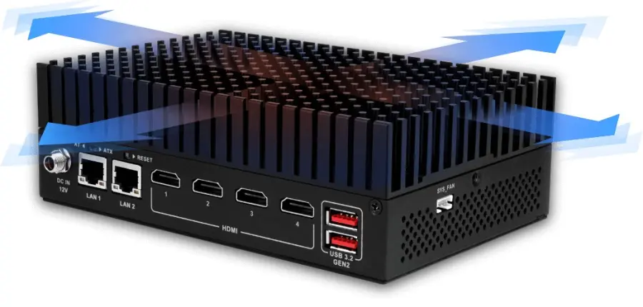 Vestavný systém bez ventilátoru s procesorem Intel®Alder Lake-P i5, vestavěnou 8GB pamětí LPDDR4x, čtyřmi displeji HDMI, 12V DC, dvěma 2,5GbE a RoHS.