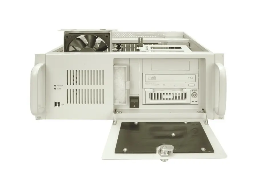 Ekonomická sestava průmyslového PC. Ekonomické řešení průmyslového počítače s použitím komerční základní desky Asus. Sestava se vyznačuje zvýšenou odolností proti prachu a mechanickým otřesům. Šasi obsahuje odpružení mechanik a uzamykatelná dvířka