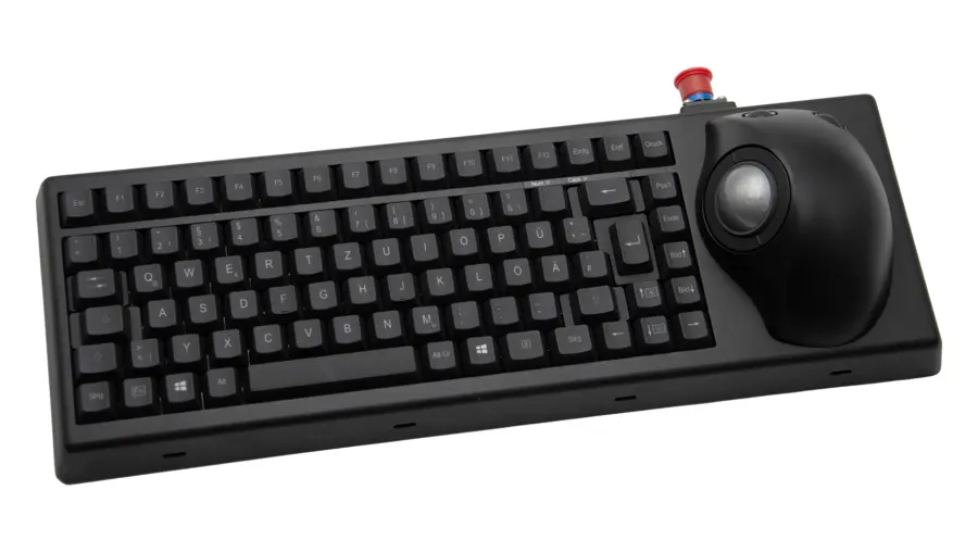 Nabízí plnohodnotnou podsvícenou klávesnici s integrovaným ergonomickým trackballem v robustním celokovovém provedení.