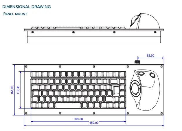 Military klávesnice MKBE87N s trackballem (panel mount)
