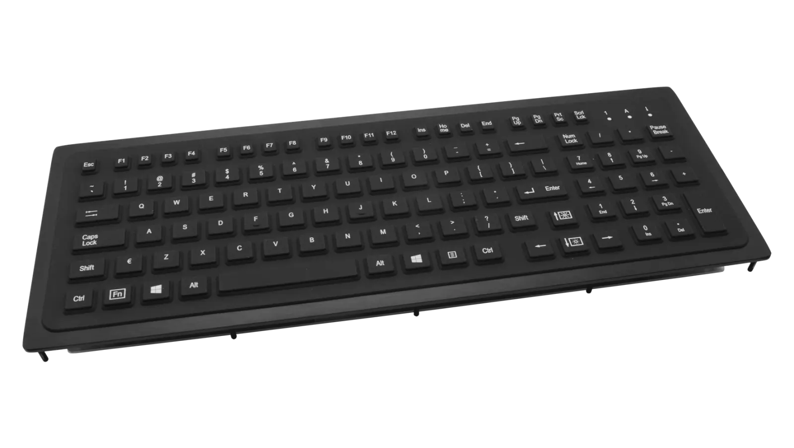 Model RKB106B0001-WLED je průmyslová silikonová klávesnice určená pro vestavbu do panelu.