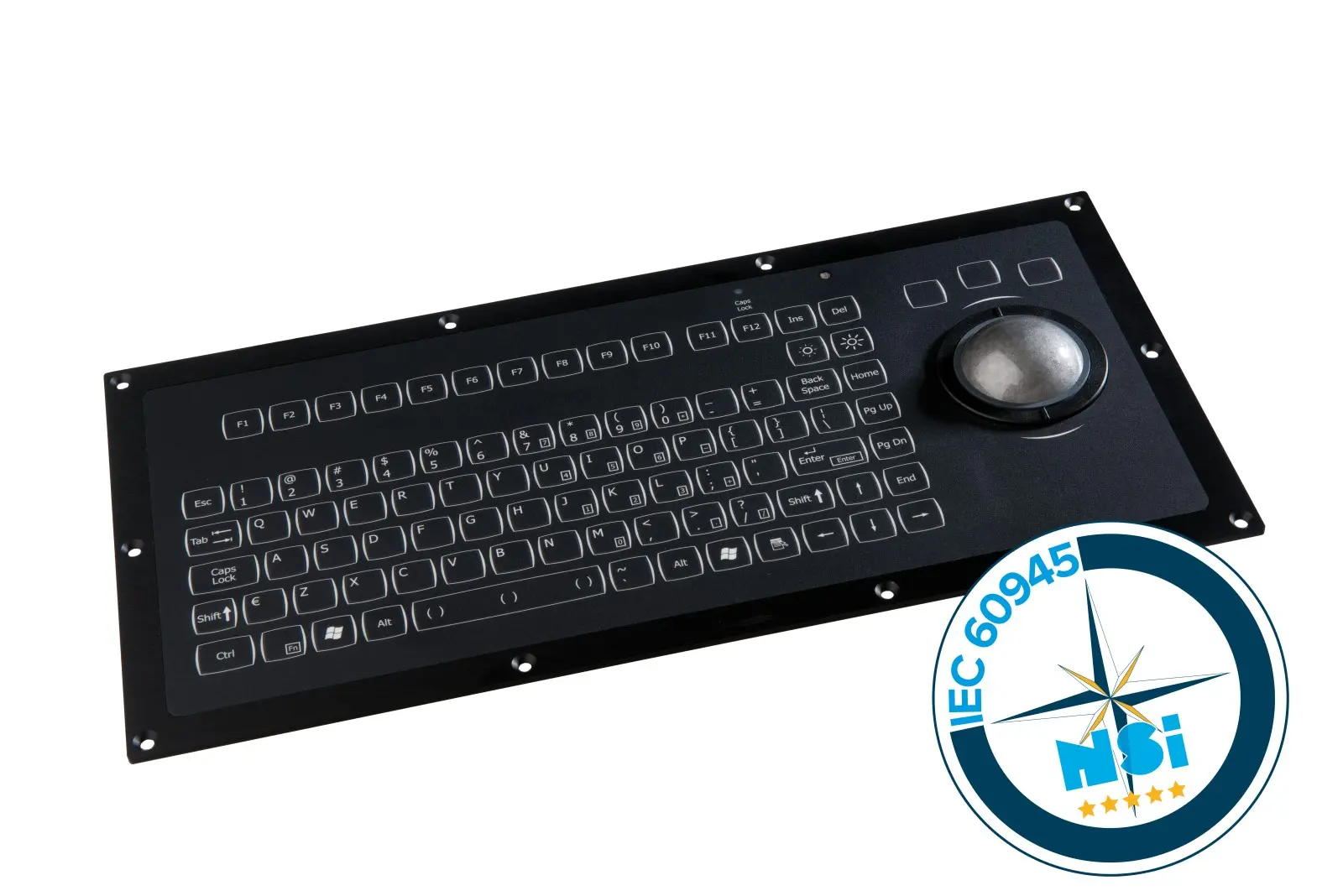 -Certifikát v souladu s normou IEC60945 -Odnímatelný 50mm optický trackball -Vysoce jasné LED diody s optickými vlákny -osvětlení popisků a obrysů kláves, obrysů trackballu a dokonce i loga nebo ochranných známek zákazníka -Záruka na nízkou spotř