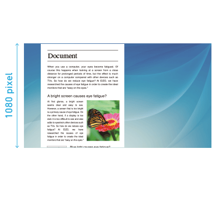 EIZO EV2430 využívá 24,1 palcový IPS panel a disponuje rozlišením 1920 x 1200 pixelů. Na obrazovku se tak vejde o 11 % více informací než na běžný FHD (1920 x 1800) monitor.