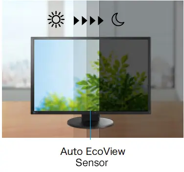 Aby se zabránilo únavě očí, senzor „Auto EcoView“ detekuje změny okolního světla, ke kterým dochází během dne, a automaticky nastavuje ideální úroveň jasu. Díky této funkci se nejen zvyšuje komfort uživatele, ale také snižuje spotřeba elektrické energie až o 40 %.