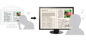 Režim „Paper“ vytváří tóny a kontrast podobné tištěnému papíru. Spolu se snímačem okolního jasu „Auto EcoView“ tak tento režim umožňuje pohodlné čtení dokumentů i elektronických knih.