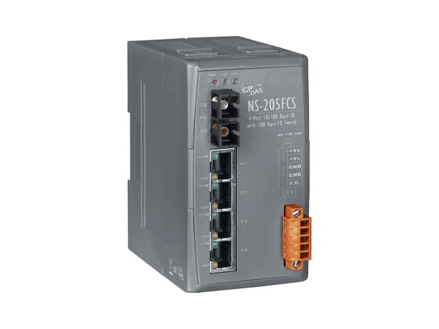 4portový průmyslový přepínač Uamanaged 10/100 Base-T(X) s optickými vlákny 100 Base-FX (plastové pouzdro)