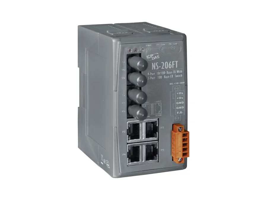 Neřízený 4portový průmyslový přepínač 10/100 Base-T(X) s duálním přepínačem 100 Base-FX (RoHS)