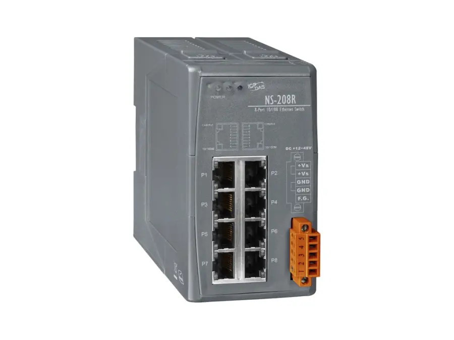 Nespravovaný 8portový průmyslový 10/100 Mb/s ethernetový přepínač EN50155 (RoHS)