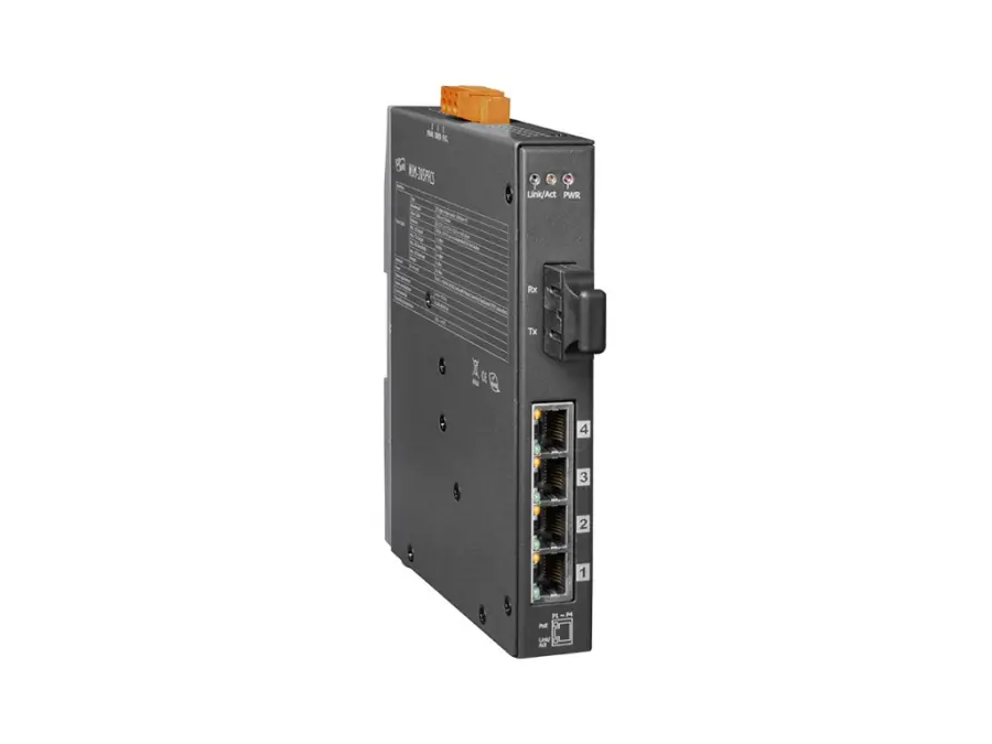 Jednovidový port 30 km, konektor SC, 4 porty 10/100 Mb/s PoE (PSE) s 1 portem pro optické vlákno; kovové pouzdro (RoHS)