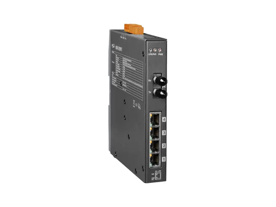 Vícerežimový, ST konektor, 4portový 10/100 Mb/s PoE (PSE) s 1 optickým portem Switch; kovové pouzdro (RoHS)