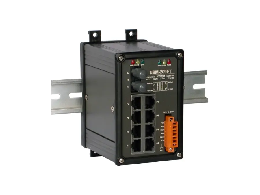 Neřízený 8portový průmyslový převodník 10/100 Base-T na 100 Base-FX optických vláken (RoHS) (kovové pouzdro)