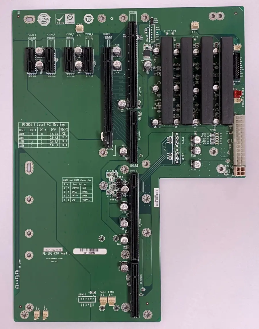 PICMG 1.3 , 10 slotů základní desky s 1PCIe x16 a 4PCIe x1 a 4PCI sloty, RoHS
