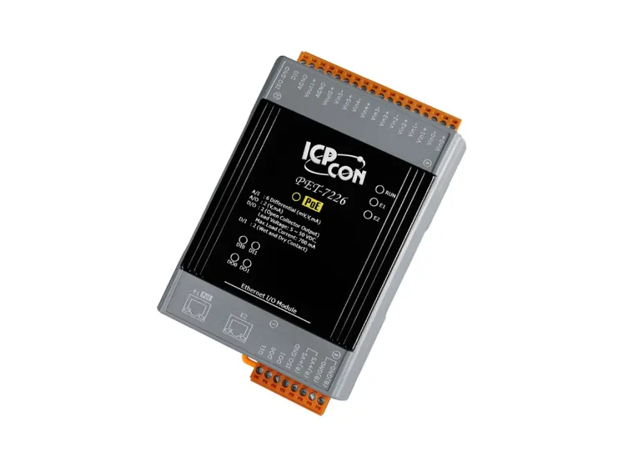 PoE Ethernet I/O modul s 2-portovým ethernetovým přepínačem, s 6-kanálovým AI, 2-kanálovým AO, 2-kanálovým DI, 2-kanálovým DO (RoHS)