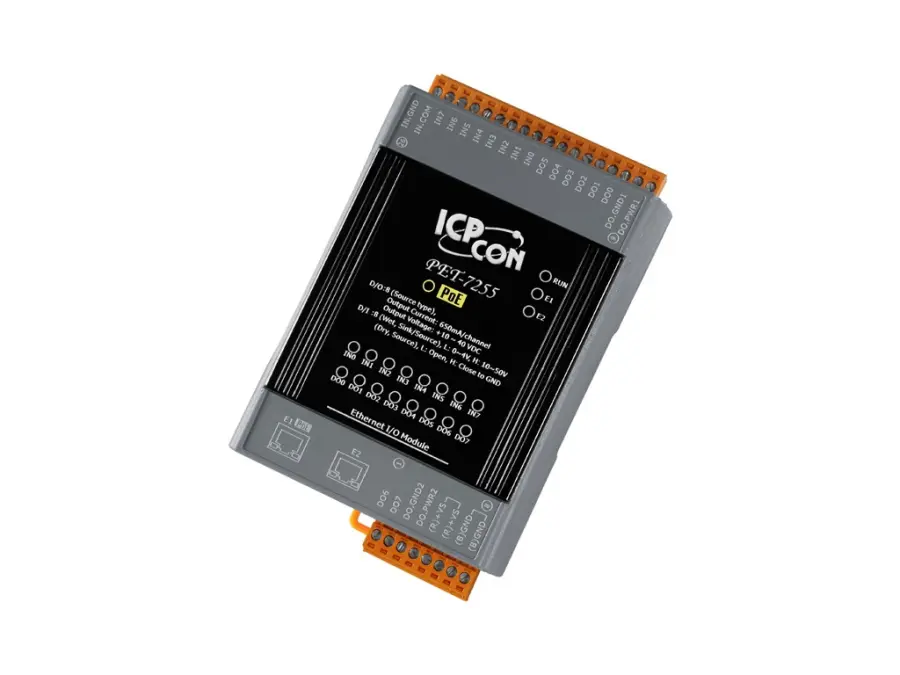 PoE Ethernet I/O modul s 2-portovým ethernetovým přepínačem, s 8-ch DI, 8-ch DO (RoHS)