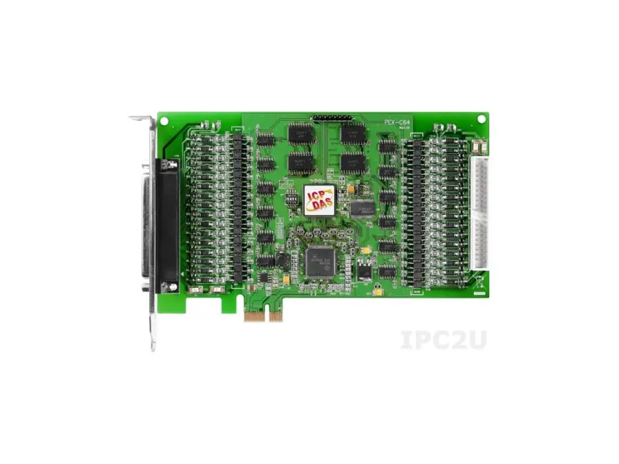 PCI Express, 32kanálový izolovaný digitální I/O a 32kanálová TTL digitální I/O deska. (s proudovým odběrem) (RoHS) Obsahuje jeden konektor CA-4002 D-Sub.